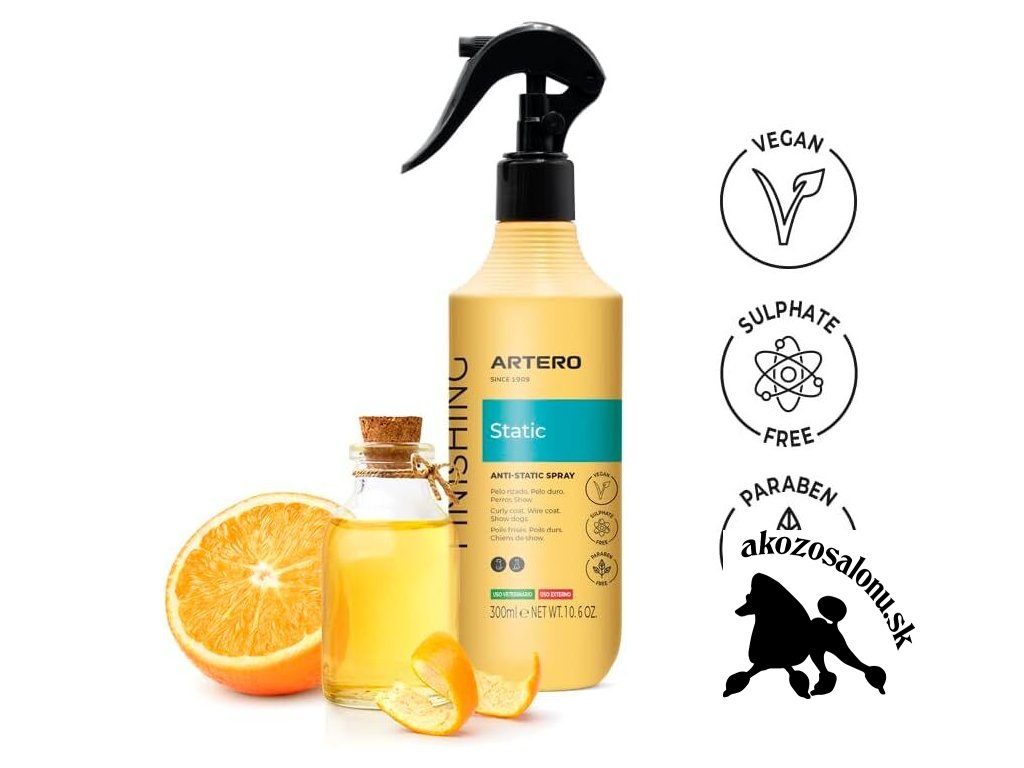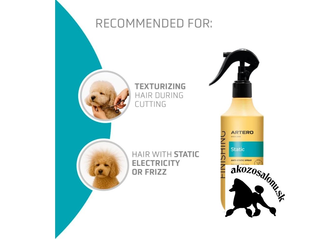 Pre antistatický/fuzz efekt nastriekajte na srsť a potom kefujte v prirodzenom smere srsti.