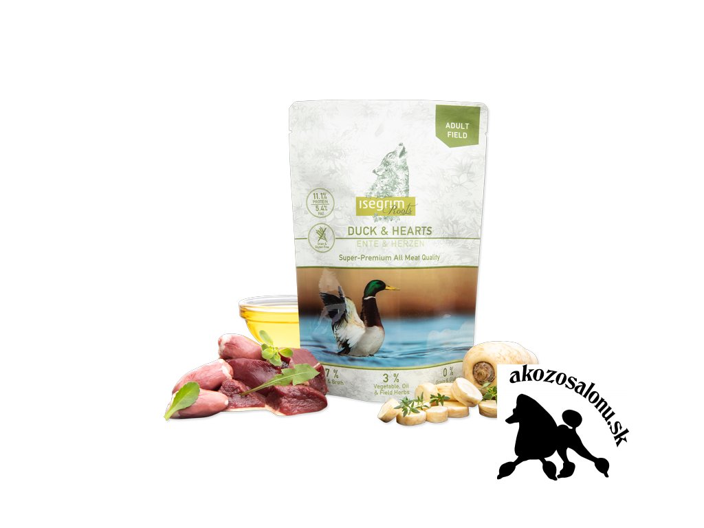 Isegrim Kačka + srdiečka so zeleninou, ľanovým olejom a poľnými bylinami, kapsička 410g