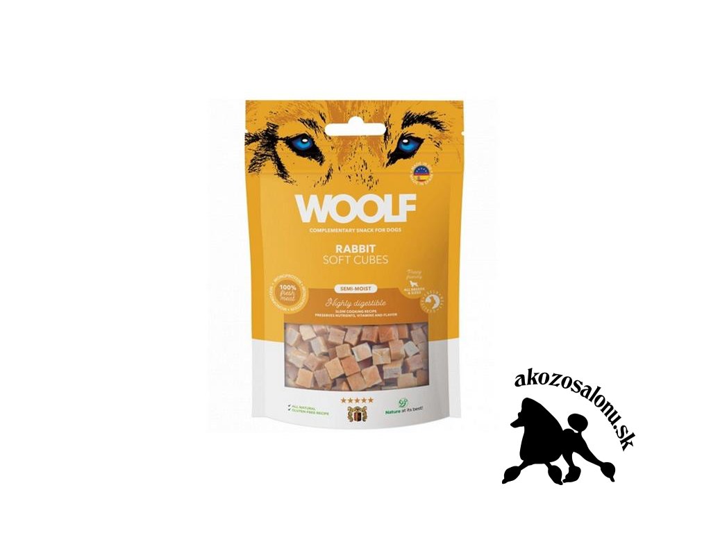 Doplnkové krmivo pre psov, jemné kocky z králičieho mäsa.