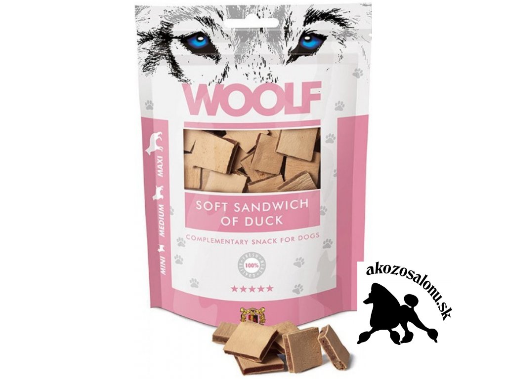 Vynikajúca pochúťka pre psov všetkých plemien, mäkký sendvič z kačacieho mäsa.